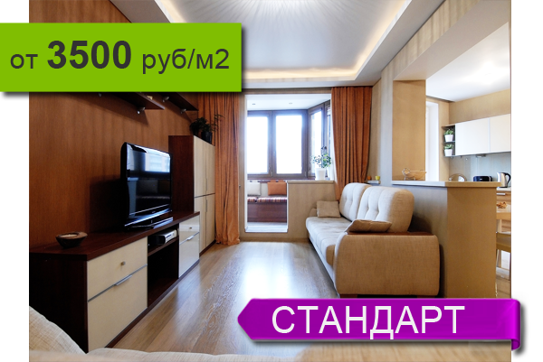Стоимость ремонта "Стандарт" - от 3500 руб/м2. Подробно рассчитать стоимость ремонта квартиры можно, воспользовавшись калькулятором.
